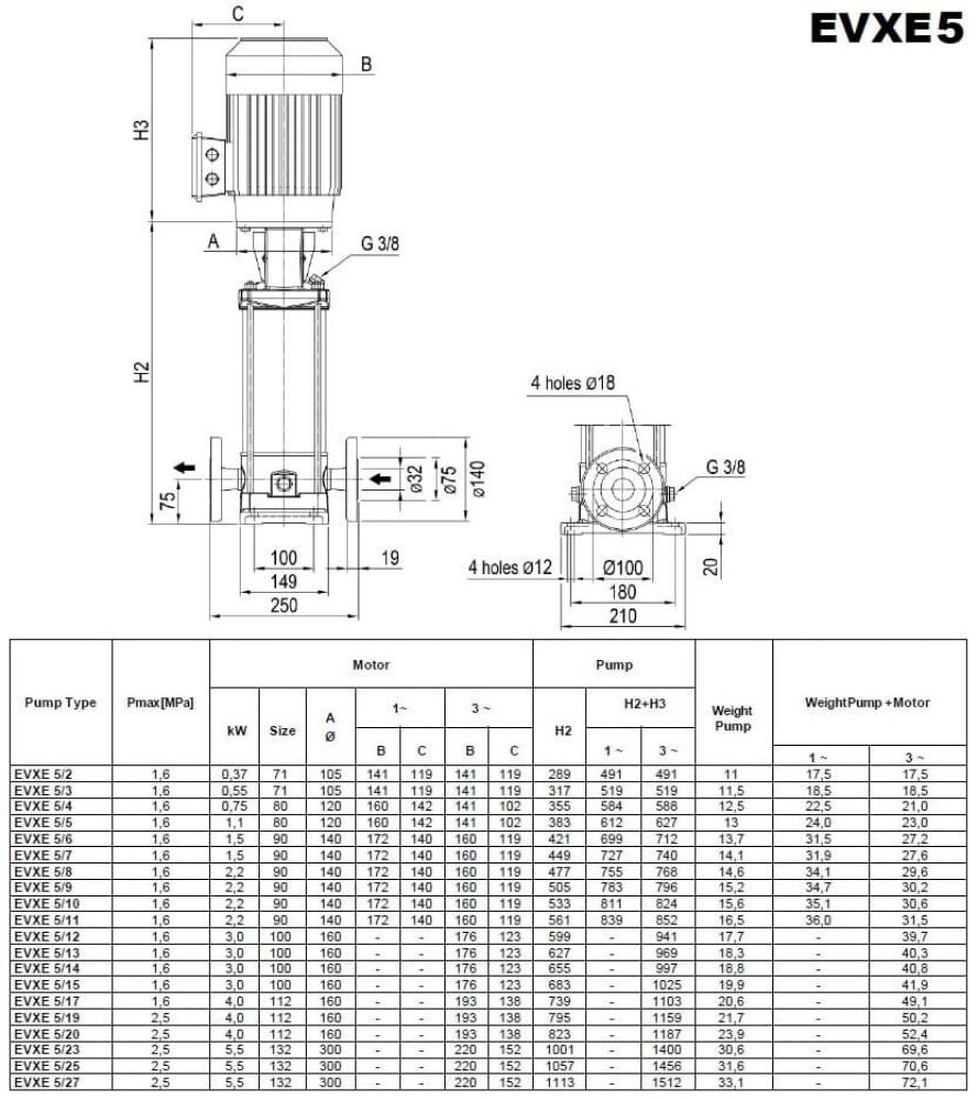 Вертикальные многоступенчатые насосы серии EVXE пригодны для различных применений, преимущественно в промышленности и строительстве (питание котлов, циркуляция горячей и холодной воды для систем отопления/охлаждения/кондиционирования, установки для повышения давления и водоснабжения, моющие установки, водоочистные сооружения и т.д.). Все части насоса, контактирующие с жидкостью, изготовлены из нержавеющей стали AISI 304 (AISI 316 по заказу). Профессиональные вертикальные многоступенчатые насосы имеют простой монтаж в линию (инлайн), а также легкий демонтаж и техническое обслуживание.