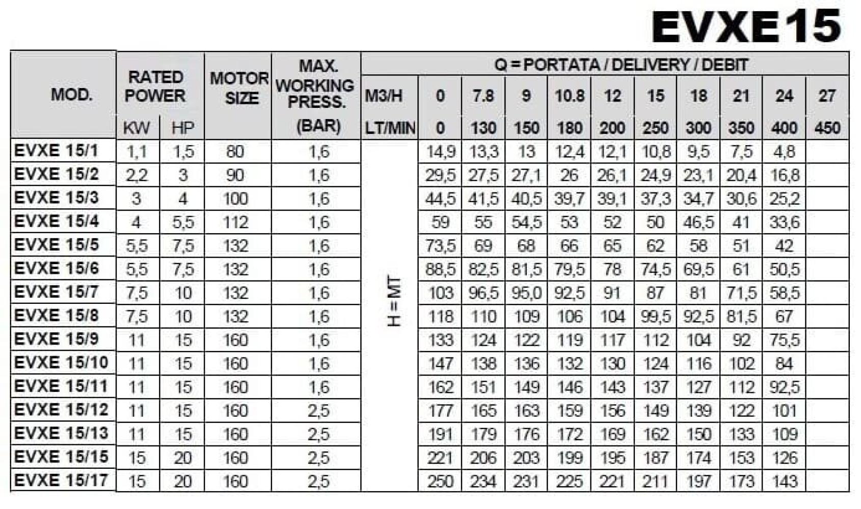 Вертикальные многоступенчатые насосы серии EVXE пригодны для различных применений, преимущественно в промышленности и строительстве (питание котлов, циркуляция горячей и холодной воды для систем отопления/охлаждения/кондиционирования, установки для повышения давления и водоснабжения, моющие установки, водоочистные сооружения и т.д.). Все части насоса, контактирующие с жидкостью, изготовлены из нержавеющей стали AISI 304 (AISI 316 по заказу). Профессиональные вертикальные многоступенчатые насосы имеют простой монтаж в линию (инлайн), а также легкий демонтаж и техническое обслуживание.