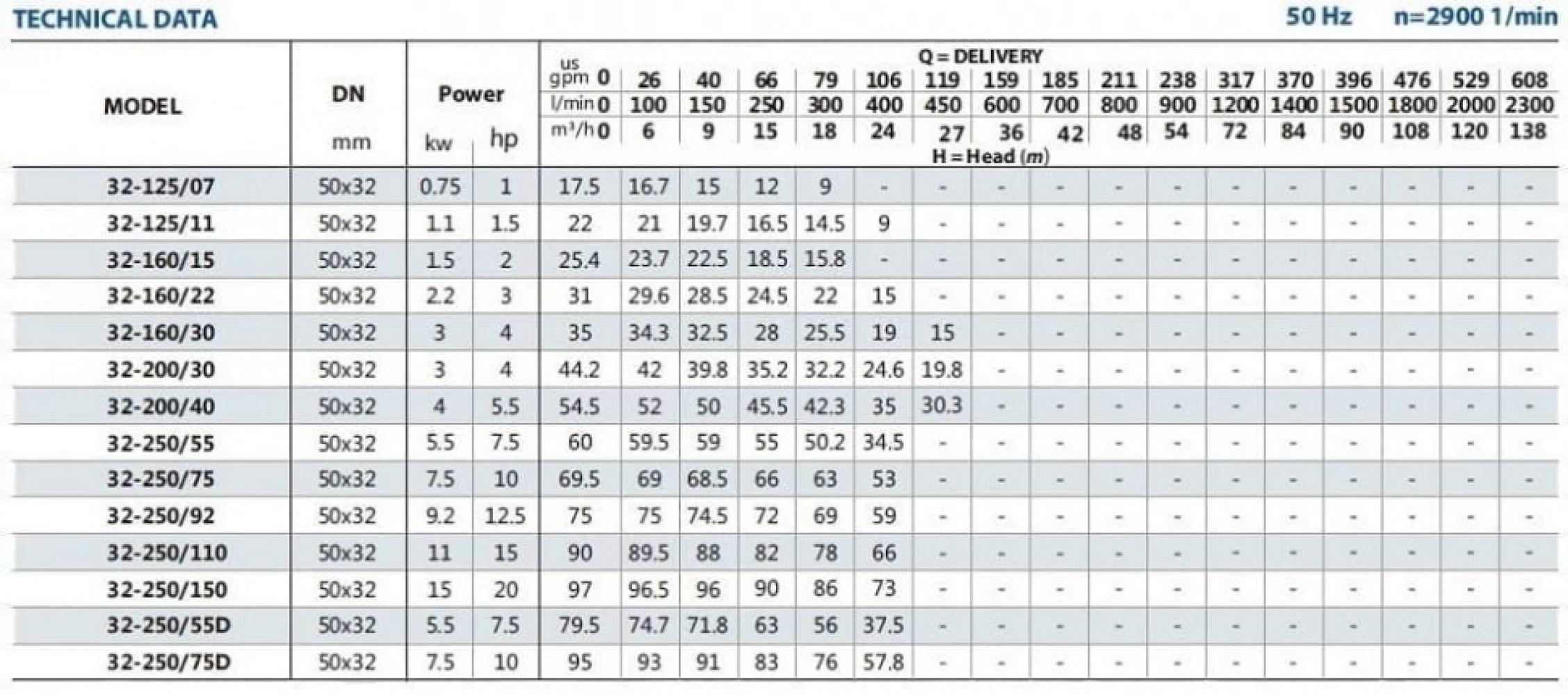 - Ebara 3D, Speroni CFM, Speroni MEM, Speroni CS, Pedrollo HF, CALPEDA NM