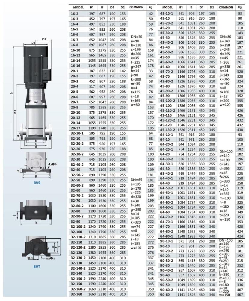 Багатоступінчасті насоси BVS з нержавіючої сталі AISI 304 підходять для систем промислової обробки, систем мийки та очищення, перекачування кислот і лугів, фільтрації, підвищення тиску, очищення води, кондиціонування, зрошення, систем протипожежного захисту.