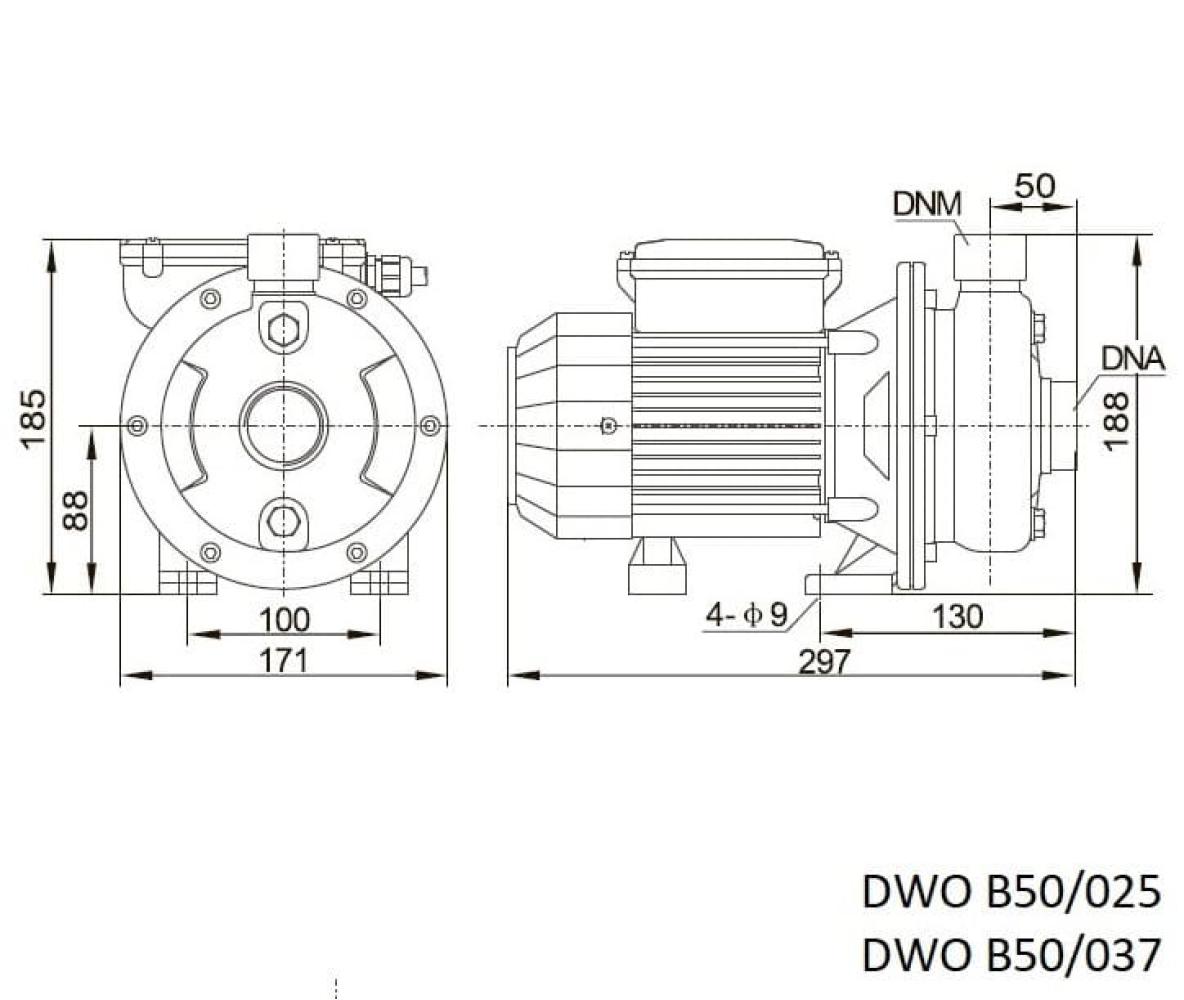 Проточная часть центробежных насосов серии DWO (корпус, рабочее колесо, днище, вал) изготовлена из нержавеющей стали AISI 304. Насосы DWO представляют собой одноступенчатые моноблочные насосы с ширококанальным закрытым рабочим колесом. Рабочее колесо размещено на удлиненном валу электродвигателя, а рабочая камера герметизирована механическим торцевым уплотнением, за счет такой конструкции насос прост в эксплуатации и обслуживании.