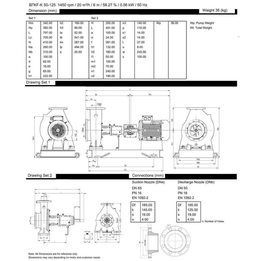 Насос для горячего масла BTKF-K предназначен для перекачивания высокотемпературных жидкостей, масла 350°C. Насос для разогрева битума, насос для деревообрабатывающих заводов по производству изделий. Насосы комплектуются рабочими колесами трех типоразмеров по диаметру (с подрезкой), что позволяет более точно подобрать насос по давлению и мощности на валу. Насос для горячего теплоносителя является центробежным насосом н с воздушным типом охлаждения, отлитым радиатором для снятия термической нагрузки камеры вала и установленных торцевых уплотнений. Насос и электродвигатель подключаются с помощью муфты. Это дает преимущества при демонтаже. Размер насоса отвечает стандарту TS EN 733. Входные и выходные размеры фланцев отвечают ISO 7005-2 / PN16. В насос установлено механическое уплотнение, которое исполнено из материалов стойких к высоким температурам. При необходимости замены рабочего колеса, подшипников или уплотнений, насос легко разбирается. Предназначение: насос для перегретой жидкости, масла, других чистых продуктов с температурой до 350°C. Применения: