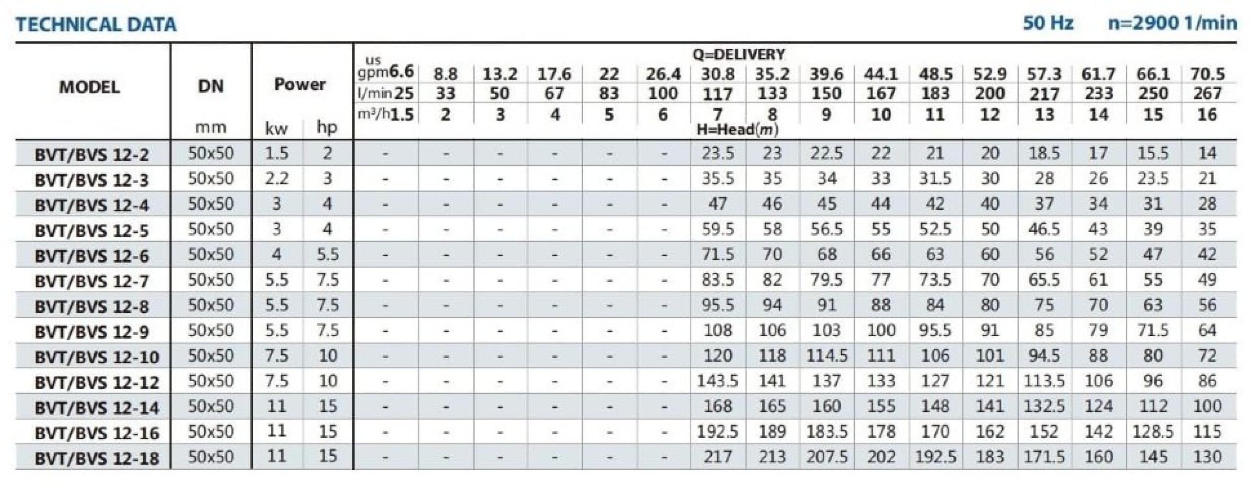 Багатоступінчасті насоси BVS з нержавіючої сталі AISI 304 підходять для систем промислової обробки, систем мийки та очищення, перекачування кислот і лугів, фільтрації, підвищення тиску, очищення води, кондиціонування, зрошення, систем протипожежного захисту.