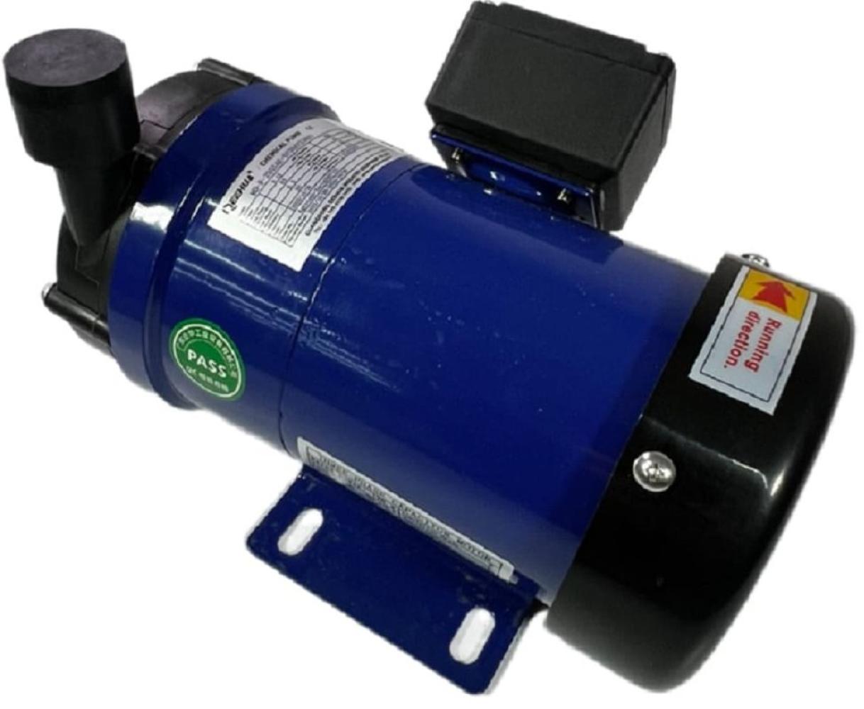 - в конструкции этих насосов не используется торцевое уплотнение, сальник или другой уплотнительный элемент подобного типа. Привод рабочего органа осуществляется с помощью магнитного поля, рабочая камера и приводной вал разделены неподвижным кожухом из химически устойчивого материала. Это исключает возможность утечки жидкости из рабочей камеры. Магнитная муфта не боится твердых частиц в жидкости, нет возможности протечки, что не маловажно при перекачке химически активных и взрывоопасных жидкостей. В отличие от насосов с механическим уплотнением, насосы оборудованые магнитной муфтой не требуют технического обслуживания (что приводит к экономии средств и времени). Технические характеристики: Входной-выходной патрубок: 26x26 мм Мощность двигателя: 90 Вт Электропитание: 50HZ 3Ø-380V Высота подачи (max): 5.6 м Производительность (max): 60 л / мин Аналоги насосов: