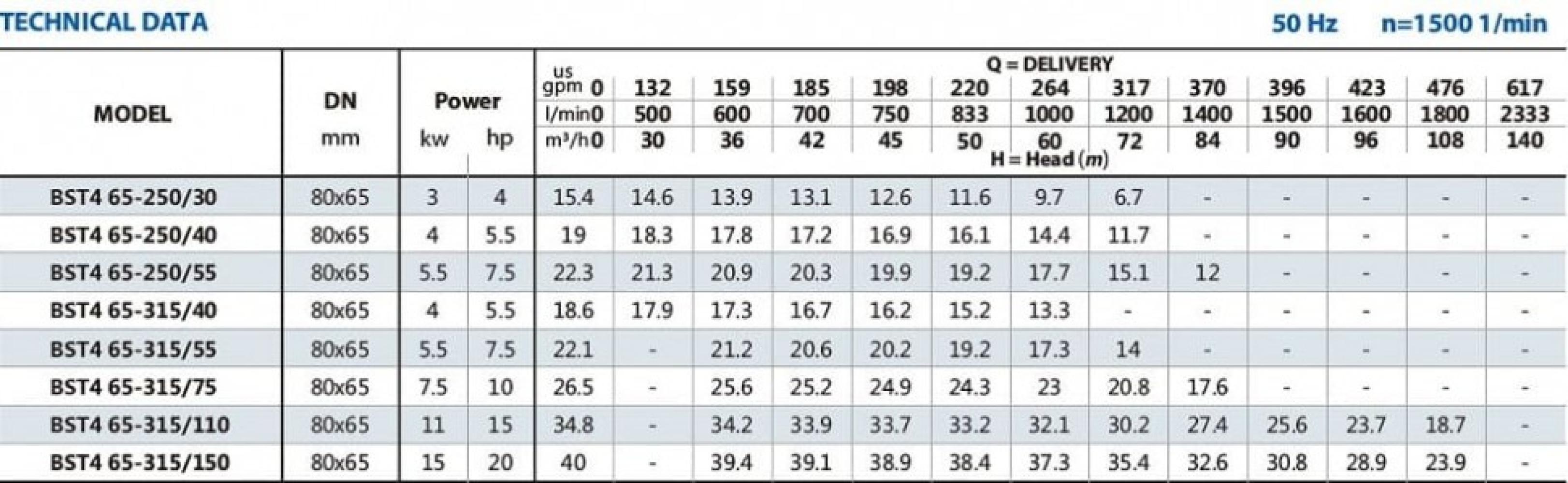 - Ebara 3D, Speroni CFM, Speroni MEM, Speroni CS, Pedrollo HF, CALPEDA NM