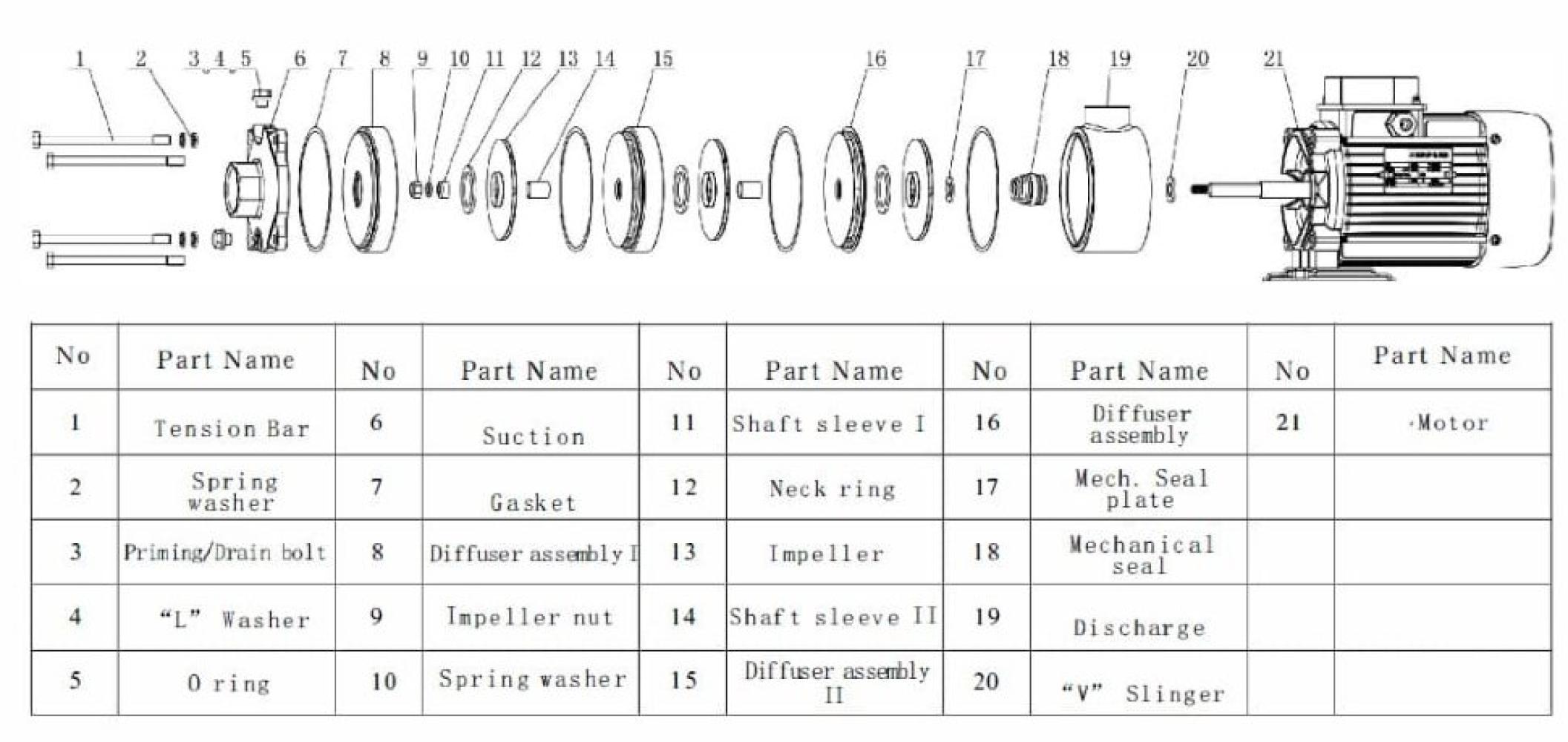 Осевое всасывание, радиальное нагнетание. Этот насос можно использовать с полным напором, не перегружая двигатель.