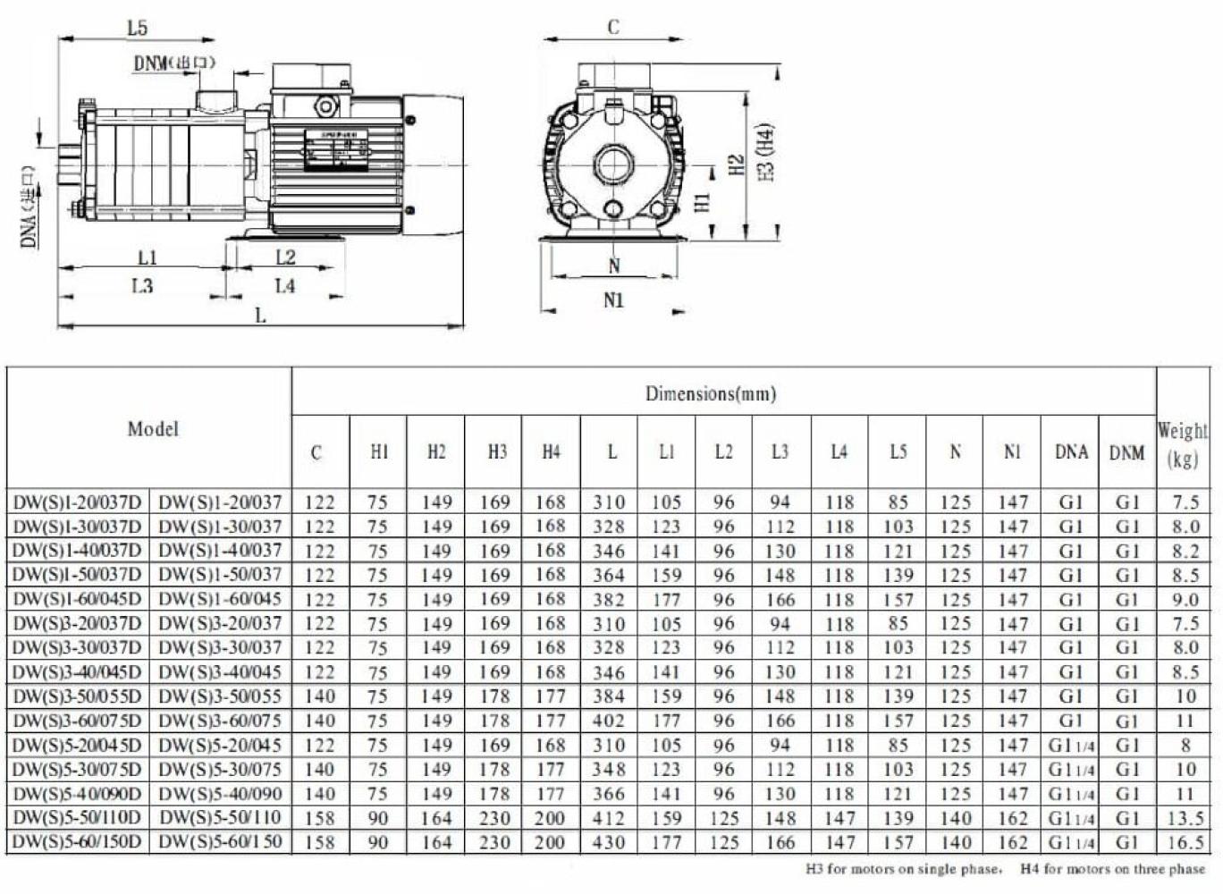 Многоступенчатый горизонтальный центробежный насос из нержавеющей стали для горячей воды DW(S). Применение: системы водоснабжения, питание котлов под давлением, системы очистки воды, фармацевтическая и пищевая промышленность, перерабатывающая химическая промышленность, мойка и дождевание. Подходит для транспортировки чистых и неагрессивных жидкостей, которые являются неагрессивными к нержавеющей стали AISI304. Корпус, рабочее колесо, задняя крышка, вал насоса и диффузоры изготовлены из нержавеющей стали AISI304.