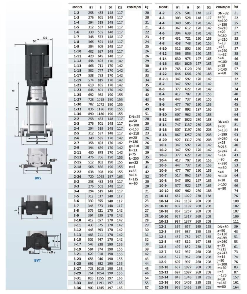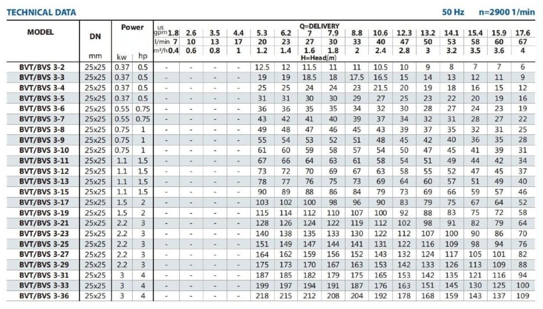 Багатоступінчасті насоси BVS з нержавіючої сталі AISI 304 підходять для систем промислової обробки, систем мийки та очищення, перекачування кислот і лугів, фільтрації, підвищення тиску, очищення води, кондиціонування, зрошення, систем протипожежного захисту.