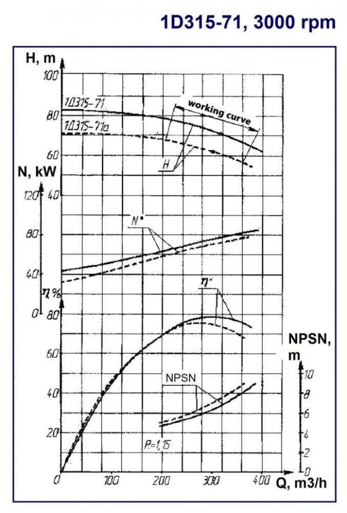 - напор насоса в номинальном режиме, м. Насос Д320-50а