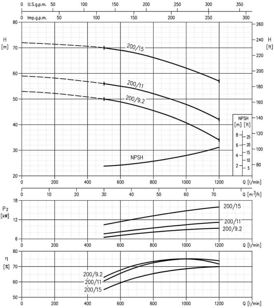- 3P). Специальные двигатели: взрывобезопасные, высокоэффективные EFF 1, низкошумные, с интегрированным инвертором VMA. На заказ устанавливается механическое уплотнение, что удовлетворит ваши потребности. Спецификация: производительность до 132 м3/час. Высота подачи до 72 м. Максимальное давление: 1 МПа. Температура перекачиваемой жидкости: -10°C ÷ 100°C. по стандарту, -10°C ÷ 110°C для версии Н. Корпус насоса, крышка корпуса, рабочее колесо и вал из нержавеющей стали AISI 304 (серия 3), с AISI 316L (серия 3L). Механическое уплотнение из графита/керамики/NBR для стандартной версии (серия 3), из SiC/SiC/FPM (серия 3L), механическое уплотнение из графита/керамики/FPM для версии Н, механическое уплотнение из SiC/SiC/FPM для версии HS, механическое уплотнение из SiC/графита/FPM для версии Е. Технические данные: асинхронный 2-х и 4-х полюсный двигатель. Класс изоляции F . Степень защиты IP55. Однофазные 220V, 50 Гц, трехфазные 380V, 50 Гц. Защиту от тепловой перегрузки должен обеспечить потребитель.