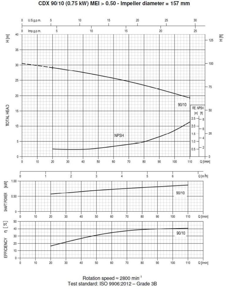 Технические данные: производительность до 15 м3 / ч; высота подачи до 42 м; T.E.F.C. 2 полюсный двигатель; класс изоляции F; Степень защиты IP 55; рабочее напряжение: однофазные 220V, 50 Hz, трехфазные 380V, 50 Hz; входной патрубок 1" 1/2 для CDX 200, 1" 1/2 для других моделей; выходной патрубок 1"