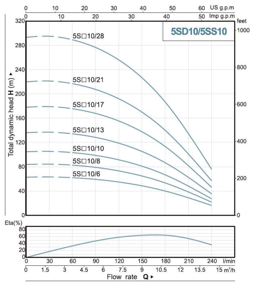 Насос EDWIN серии 5SS применяется для водоснабжения скважин или водоемов, для бытового, гражданского и промышленного применения, для использования в садах и для орошения. Условия эксплуатации: наибольшая температура воды до +35°C, наибольшее содержание песка: 0,25%, малый диаметр скважины: 5".