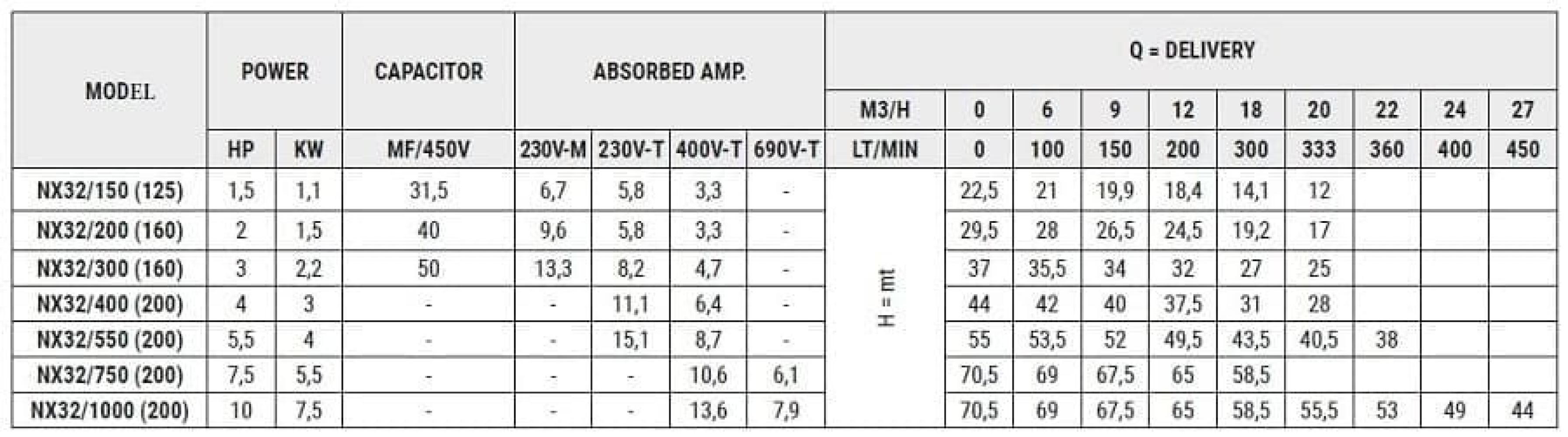 Центробежные насосы серии NX используются для перекачки химически чистой воды без твердых частиц в системах отопления и охлаждения, оросительных системах, пожарных установках. Все части насоса, контактирующие с жидкостью, изготовлены из нержавеющей стали и спроектированы в соответствии со стандартами DIN 24255 (UNI EN 733). Широкий выбор и высокая надежность делают эти насосы пригодными для сельскохозяйственного, гражданского и промышленного применения. Корпус насоса, рабочее колесо, диффузоры: нержавеющая сталь AISI 304. Вал двигателя: нержавеющая сталь AISI 304. Корпус и кожух двигателя: алюминий. Механическое уплотнение Cer/Car/NBR (стандарт).
