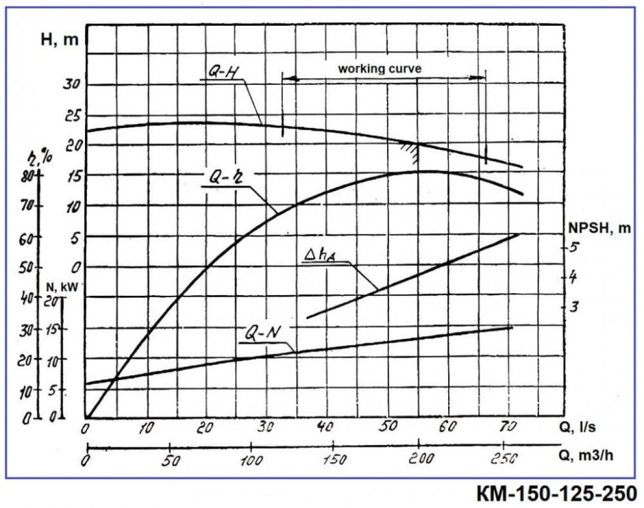 Консольные центробежные насосы типа КM предназначены для перекачки чистой воды (кроме морской) с pH 6…9 и других подобных чистой воде жидкостей по плотности, вязкости и химической активности. Работают в стационарных условиях с температурой в диапазоне от 0 до +85°С. Перекачиваемые жидкости не должны содержать механических примесей по объему более 0,1% и размеру более 0,2 мм. Уплотнение вала насосов – одинарный сальник. Материал деталей проточной части – серый чугун. По специальному заказу агрегаты производятся с двойным сальниковым уплотнением (СД) для перекачки жидкости с температурой до плюс 105°С и торцевым уплотнением (Т).
