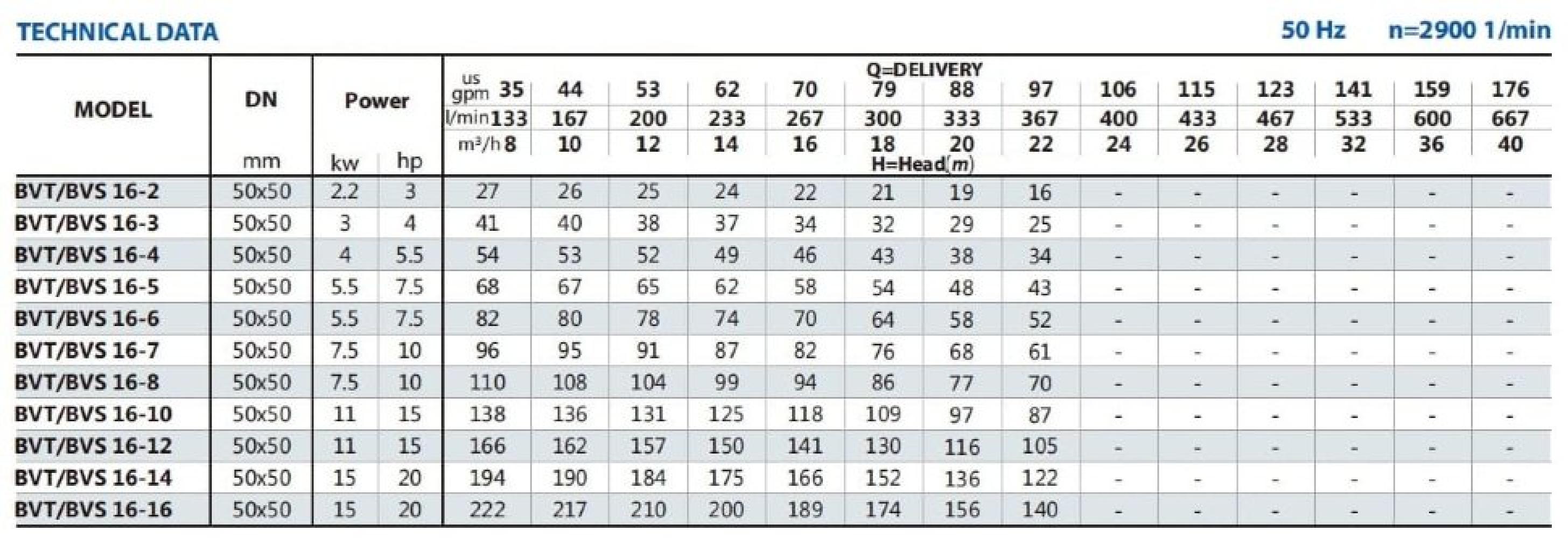 Багатоступінчасті насоси BVS з нержавіючої сталі AISI 304 підходять для систем промислової обробки, систем мийки та очищення, перекачування кислот і лугів, фільтрації, підвищення тиску, очищення води, кондиціонування, зрошення, систем протипожежного захисту.