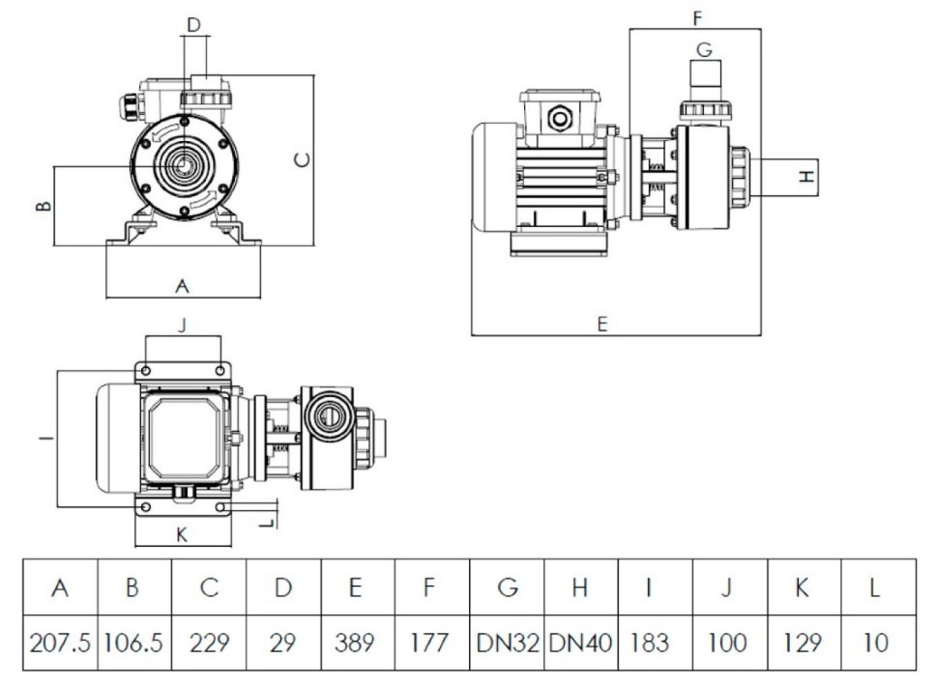 Корпус насоса выполнен из полипропилена, что обеспечивает его химическую стойкость и надежность в эксплуатации.