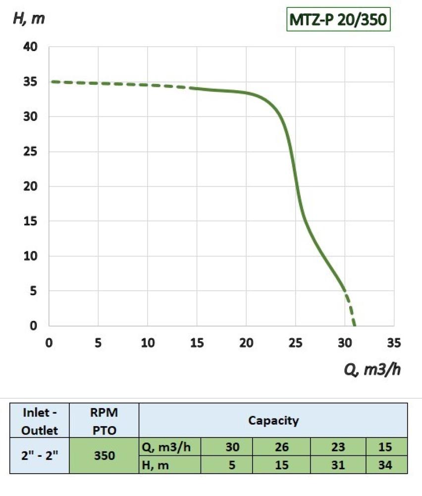 Привод насоса осуществляется от вала отбора мощности трактора через карданный вал. Учитывая то, что ВОМ трактора имеет коробку передач для регулировки частоты вращения рабочего колеса производительность насоса может достичь 30 м.куб./час. Насосы данного типа могут агрегатироваться на тракторы отечественного и импортного производства, таких как МТЗ, ЮМЗ, ХТЗ, Deutz-Fahr, John Deere, Case IH, Massey Ferguson, New Holland (США), Fendt, Claas (Германия) и др.