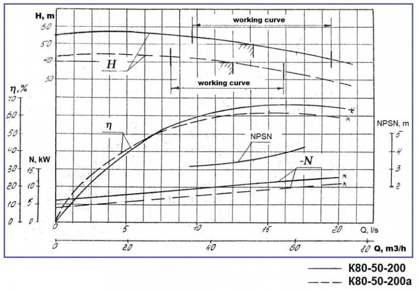 Консольные центробежные насосы типа К предназначены для перекачки чистой воды (кроме морской) с pH 6…9 и других подобных чистой воде жидкостей по плотности, вязкости и химической активности. Работают в стационарных условиях с температурой в диапазоне от 0 до +85°С. Перекачиваемые жидкости не должны содержать механических примесей по объему более 0,1% и размеру более 0,2 мм. Уплотнение вала насосов – одинарный сальник. Материал деталей проточной части – серый чугун. По специальному заказу агрегаты производятся с двойным сальниковым уплотнением (СД) для перекачки жидкости с температурой до плюс 105°С и торцевым уплотнением (Т).