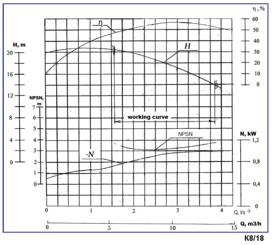 Консольные центробежные насосы типа К предназначены для перекачки чистой воды (кроме морской) с pH 6…9 и других подобных чистой воде жидкостей по плотности, вязкости и химической активности. Работают в стационарных условиях с температурой в диапазоне от 0 до +85°С. Перекачиваемые жидкости не должны содержать механических примесей по объему более 0,1% и размеру более 0,2 мм. Уплотнение вала насосов – одинарный сальник. Материал деталей проточной части – серый чугун. По специальному заказу агрегаты производятся с двойным сальниковым уплотнением (СД) для перекачки жидкости с температурой до плюс 105°С и торцевым уплотнением (Т).