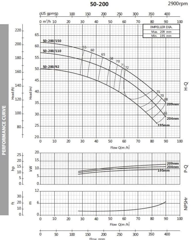 - Ebara 3D, Speroni CFM, Speroni MEM, Speroni CS, Pedrollo HF, CALPEDA NM