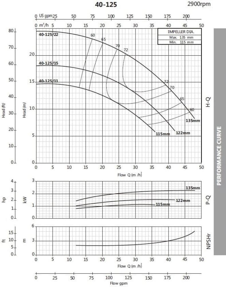 - Ebara 3D, Speroni CFM, Speroni MEM, Speroni CS, Pedrollo HF, CALPEDA NM