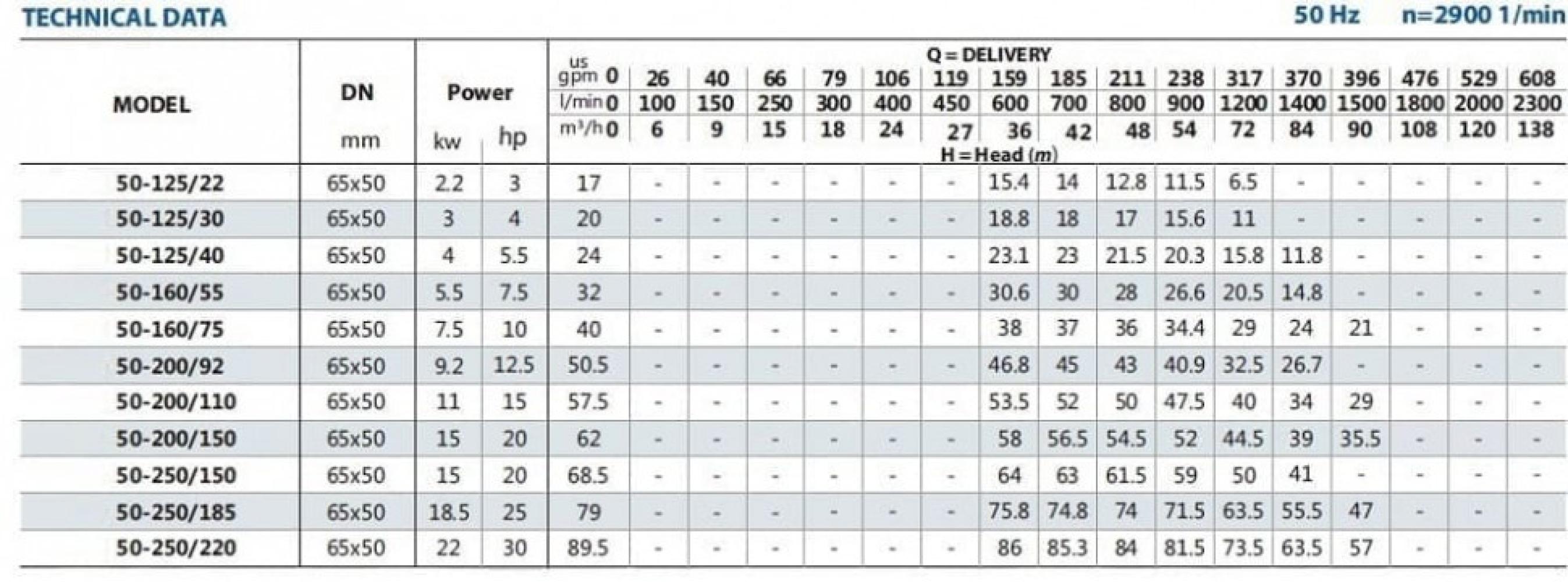 - Ebara 3D, Speroni CFM, Speroni MEM, Speroni CS, Pedrollo HF, CALPEDA NM