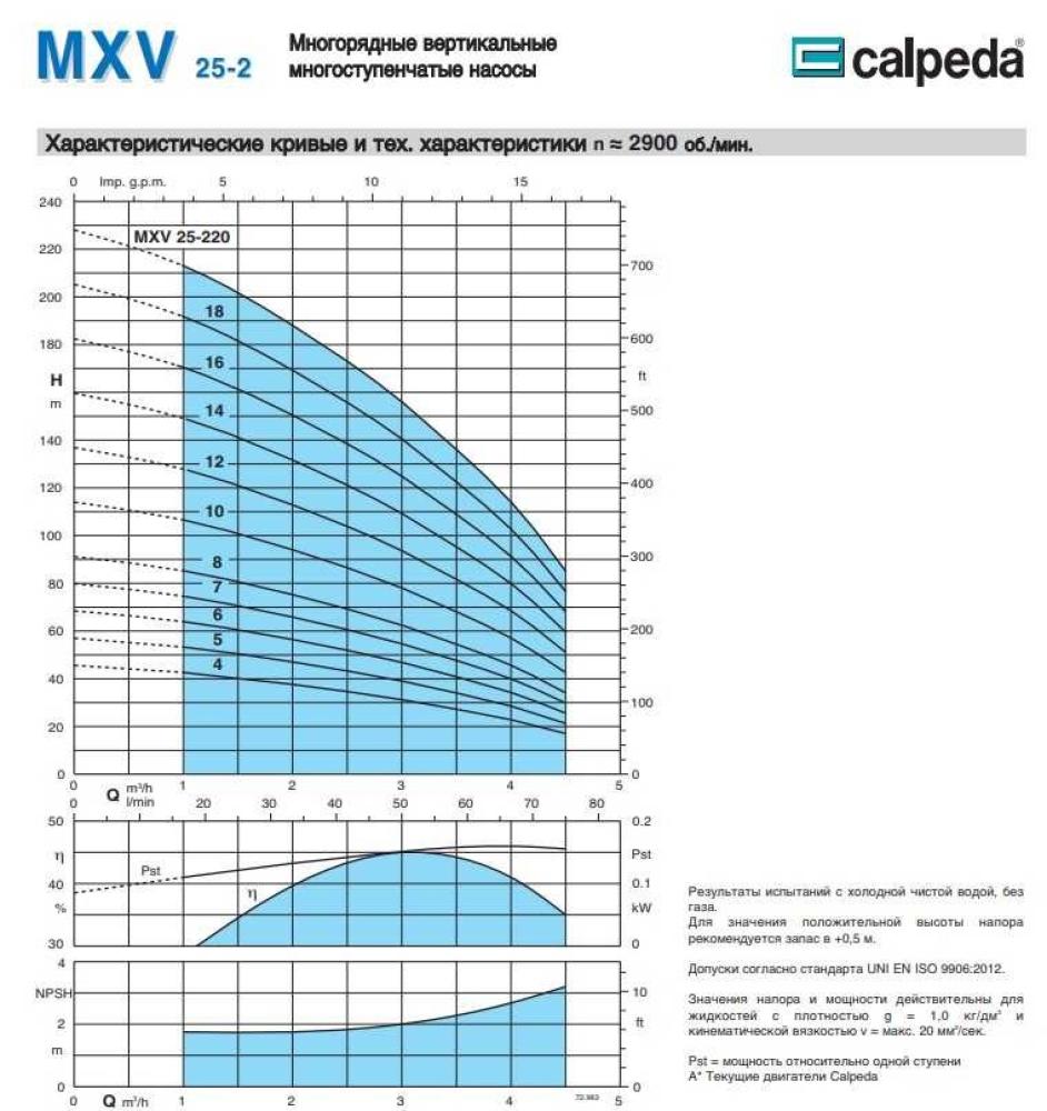 Насосы Calpeda MXV являются многорядными вертикальными многоступенчатыми агрегатами, с патрубками (всасывающим и подающим) одинакового диаметра, расположение которых на одном валу.Широкая область применения позволяет их использовать в быту и промышленности. (полив, повышение давления, установки пожаротушения и т.д.), способен перекачивать чистые, невзрывоопасные жидкости,не содержащие абразивные, твёрдые или волокнистые примеси, которые к тому же не являются агрессивными к нержавейке. Установка насоса может быть как горизонтальной, так и вертикальной. Отличительной особенностью данной серии насосов является достижение высокого давления за счёт набора нескольких рабочих колёс.