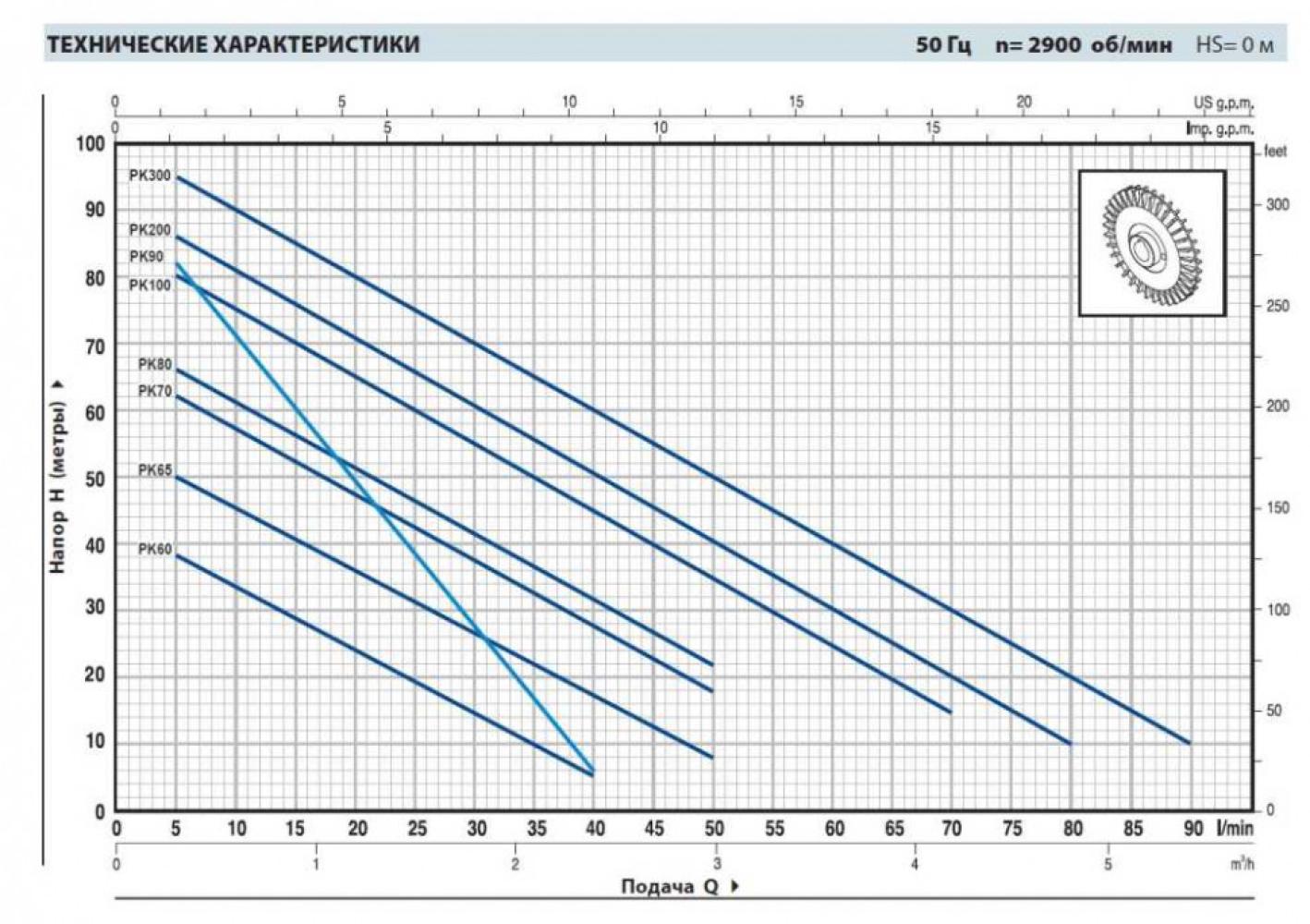 - Высота подачи, м.вод.ст