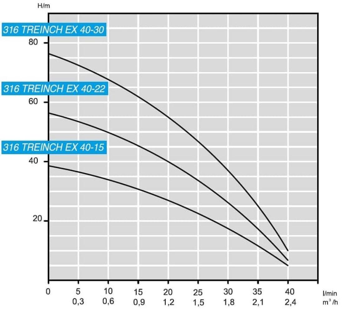 Двигатель: 2-полюсный асинхронный двигатель, 50 Гц, 2850 об/мин; изоляция класса F; защита IP68; рабочее напряжение: однофазное 220V, трехфазное 380V.