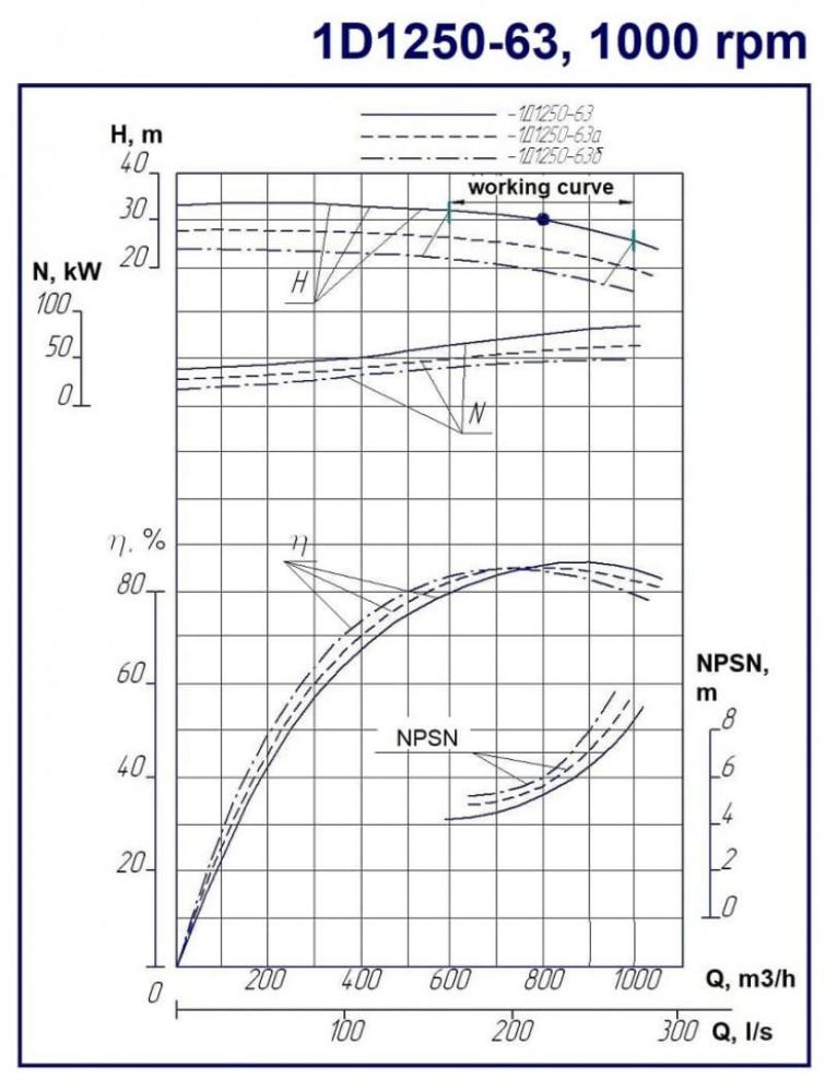 - как водяной насос для полива полей, на предприятиях ЖКХ, в специальном исполнении они используются даже в нефтяной и химической промышленности. Особенностью насоса является центробежное колесо двустороннего входа, то есть жидкость попадает в рабочее колесо с двух сторон, далее она разгоняется и выбрасывается лопатками, находящимися внутри колеса и попадает в напорную камеру насоса. У насоса Д угол разгона потока жидкости 360 градусов в отличие от обычного центробежного насоса, это повышает КПД и делает агрегат энергосберегающим. Патрубки размещены линейно, это так же экономит энергию, затраченную обычным центробежным насосом на изменение угла потока жидкости. Зачастую одним насосом Д можно заменить несколько центробежных насосов, что в разы уменьшит трудозатраты и затраты на ремонт оборудования, как известно, главным условием стабильной и долговременной работы центробежных насосов является отсутствие вибрации (точная посадка и центровка). Зеркальная конструкция насоса дает возможность контролировать этот процесс, что так же в разы повышает стабильность центровки. Насосы центробежные двухстороннего входа типа Д и агрегаты на их основе, предназначены для перекачивания технической воды и других жидкостей, имеющих сходные с водой свойства по вязкости и химической активности, температурой до 85°С, не содержащих твердых включений по массе более 0,05%, размером более 0,2 мм, микротвердостью более 6,5ГПа (650 кгс/мм2). Насосы, самостоятельно или в составе агрегатов, могут поставляться потребителю в таких исполнениях: с рабочим колесом, обеспечивающим номинальные параметры; с обточенным диаметром рабочего колеса. Условное обозначение насоса и агрегата на его основе Д 320-50, где: Д