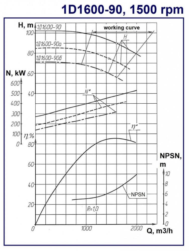 - как водяной насос для полива полей, на предприятиях ЖКХ, в специальном исполнении они используются даже в нефтяной и химической промышленности. Особенностью насоса является центробежное колесо двустороннего входа, то есть жидкость попадает в рабочее колесо с двух сторон, далее она разгоняется и выбрасывается лопатками, находящимися внутри колеса и попадает в напорную камеру насоса. У насоса Д угол разгона потока жидкости 360 градусов в отличие от обычного центробежного насоса, это повышает КПД и делает агрегат энергосберегающим. Патрубки размещены линейно, это так же экономит энергию, затраченную обычным центробежным насосом на изменение угла потока жидкости. Зачастую одним насосом Д можно заменить несколько центробежных насосов, что в разы уменьшит трудозатраты и затраты на ремонт оборудования, как известно, главным условием стабильной и долговременной работы центробежных насосов является отсутствие вибрации (точная посадка и центровка). Зеркальная конструкция насоса дает возможность контролировать этот процесс, что так же в разы повышает стабильность центровки. Насосы центробежные двухстороннего входа типа Д и агрегаты на их основе, предназначены для перекачивания технической воды и других жидкостей, имеющих сходные с водой свойства по вязкости и химической активности, температурой до 85°С, не содержащих твердых включений по массе более 0,05%, размером более 0,2 мм, микротвердостью более 6,5ГПа (650 кгс/мм2). Насосы, самостоятельно или в составе агрегатов, могут поставляться потребителю в таких исполнениях: с рабочим колесом, обеспечивающим номинальные параметры; с обточенным диаметром рабочего колеса. Условное обозначение насоса и агрегата на его основе Д 320-50, где: Д