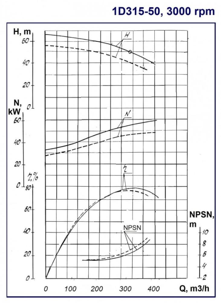- напор насоса в номинальном режиме, м. Насос Д320-50а