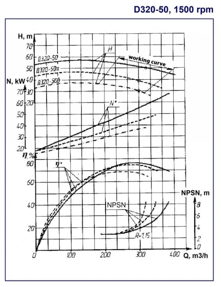 - напор насоса в номинальном режиме, м. Насос Д320-50а