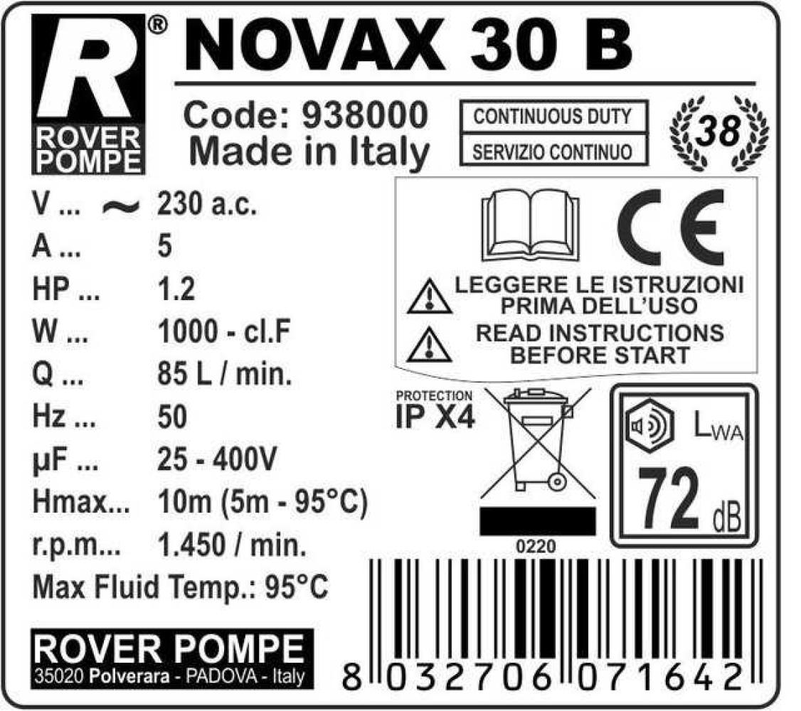 Обслуживание: обычное обслуживание требует небольшого количества и простых вмешательств, как если бы это был обычный бытовой прибор. После использования слейте чистую воду, чтобы промыть внутренние поверхности насоса. Электродвигатель не требует обслуживания, детали для смазки отсутствуют. Внешние детали необходимо очистить слегка влажной губкой, а затем сразу же высушить тряпкой.