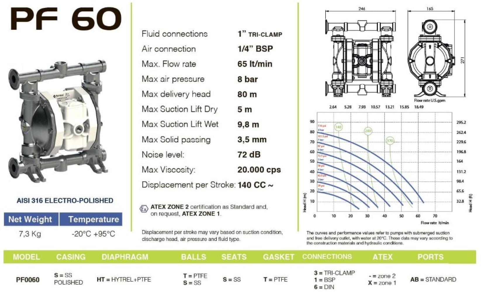 Поэтому двухмембранный насос PHOENIX FOOD является оптимальным решением для перекачивания напитков и пищевых продуктов. Мембранные насосы PHOENIX FOOD также являются идеальным решением даже в потенциально взрывоопасных средах. Высокая производительность, специально разработанная для перекачивания жидкостей с высокой вязкостью, позволяет работать с жидкостями с высокой вязкостью, при температуре до 95°C.