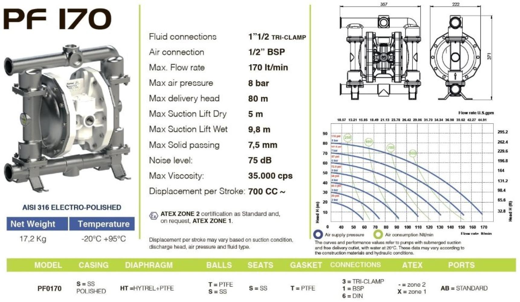 Поэтому двухмембранный насос PHOENIX FOOD является оптимальным решением для перекачивания напитков и пищевых продуктов. Мембранные насосы PHOENIX FOOD также являются идеальным решением даже в потенциально взрывоопасных средах. Высокая производительность, специально разработанная для перекачивания жидкостей с высокой вязкостью, позволяет работать с жидкостями с высокой вязкостью, при температуре до 95°C.