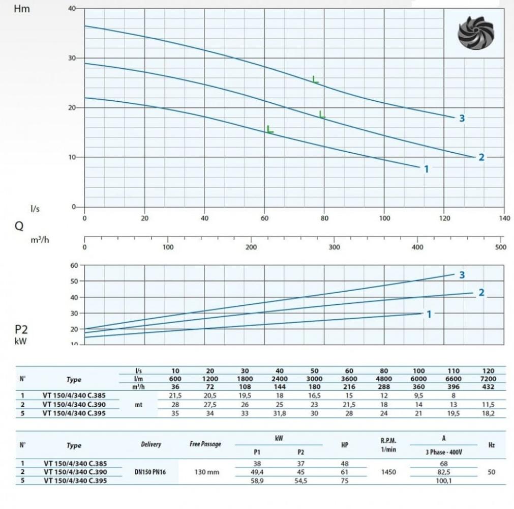 - 2 полюса 50 Гц Горизонтальный напорный патрубок