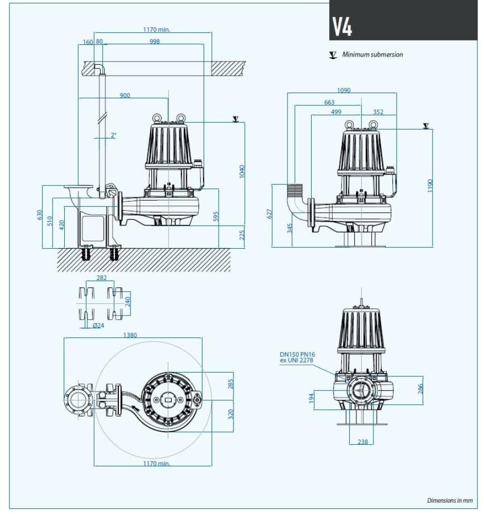 Пределы использования: максимально допустимая температура жидкости: 40°C при полностью погруженном насосе; по запросу, специальная версия (за исключением ATEX) для выдерживания температуры жидкости до 60°C с полностью погруженным насосом, без обслуживания S1; максимальная глубина погружения: 20 м; допустимое значение рН: 6-10; гидравлические характеристики, пригодные для жидкостей с плотностью <1,1 кг/дм3; допустимое напряжение: 220V/380V ±5% в зависимости от насоса; допустимая частота: 50 Гц ±2%.
