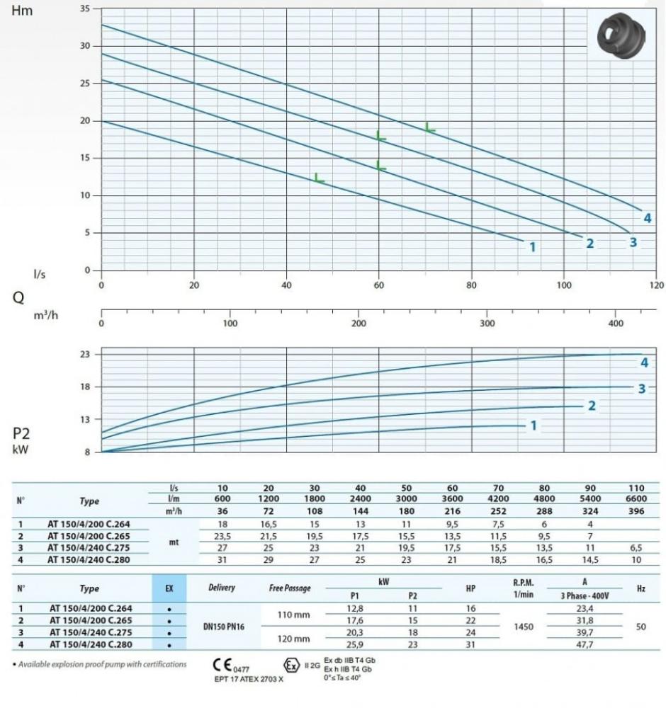 - 2 полюса 50 Гц Горизонтальный напорный патрубок