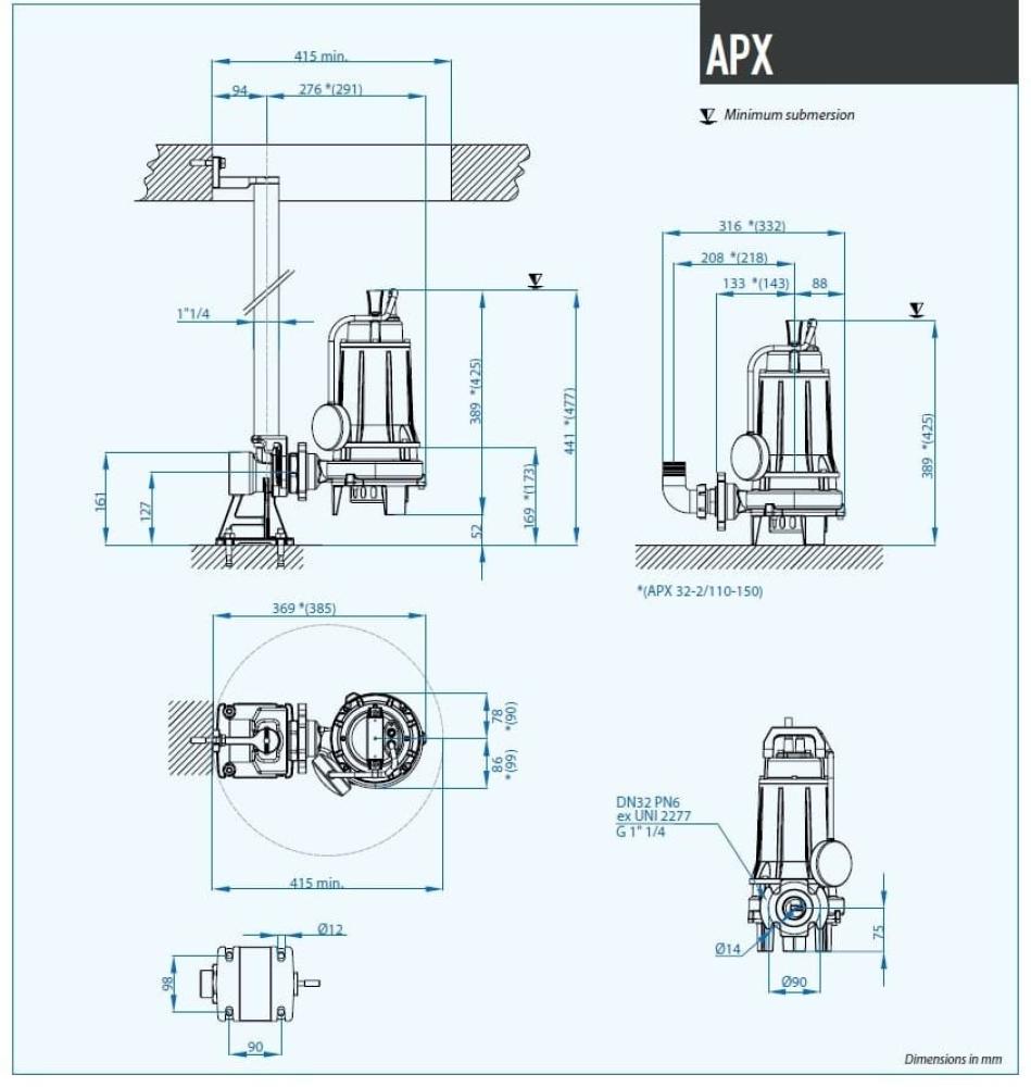 - 2 полюса 50 Гц Горизонтальный напорный патрубок