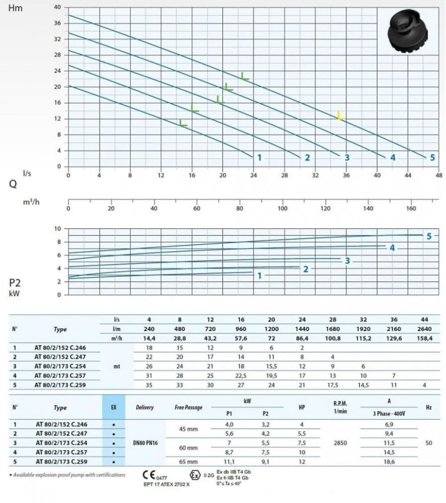 Характеристика: все основные компоненты изготовлены из чугуна GG25. Два отдельных торцевых уплотнения (сторона двигателя в масляной камере, контактирующая с жидкостью сторона крыльчатки) и высококачественные детали обеспечивают безупречную работу и надежность изделия.