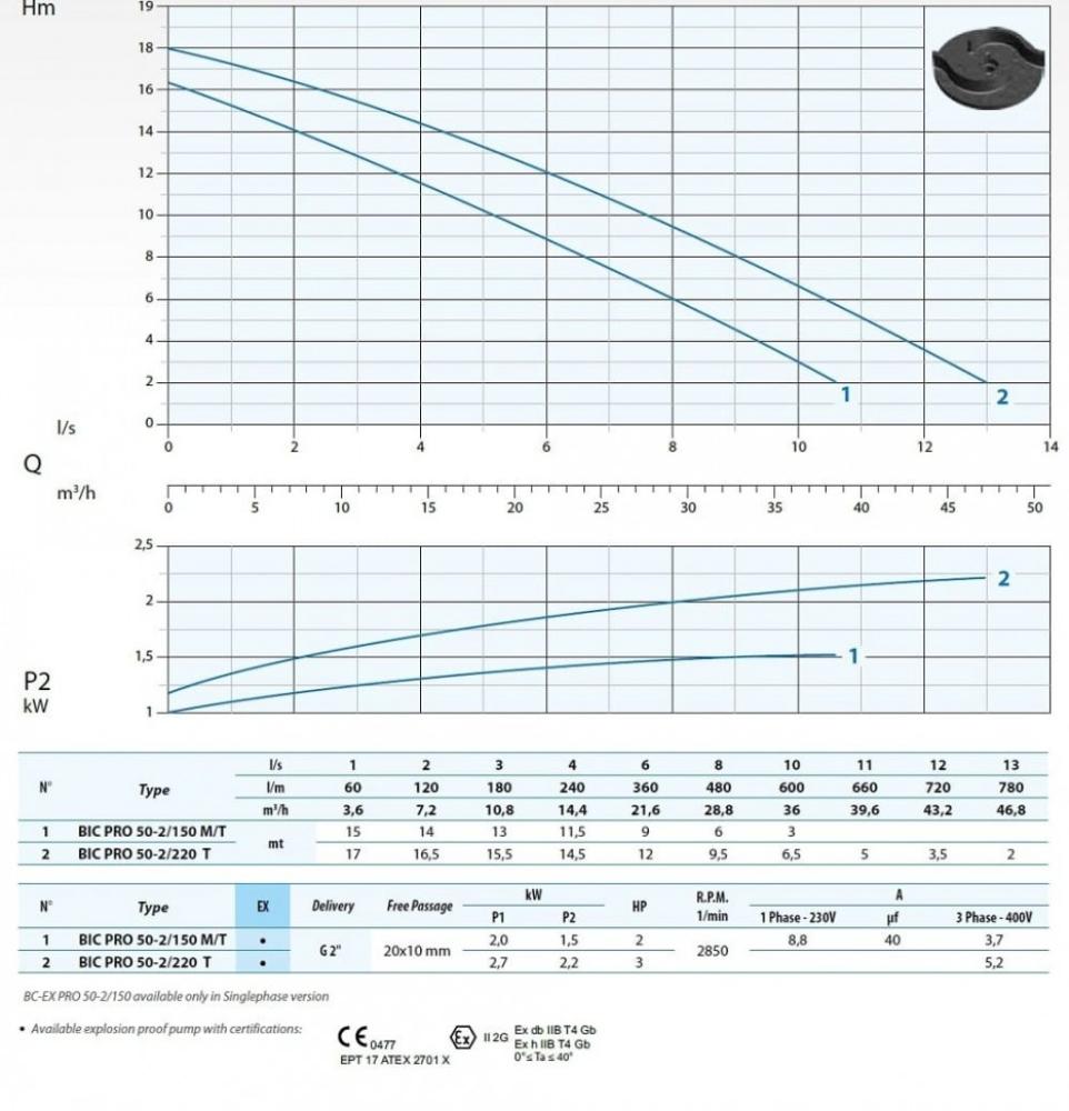 - 2 полюса 50 Гц Вертикальный напорный патрубок