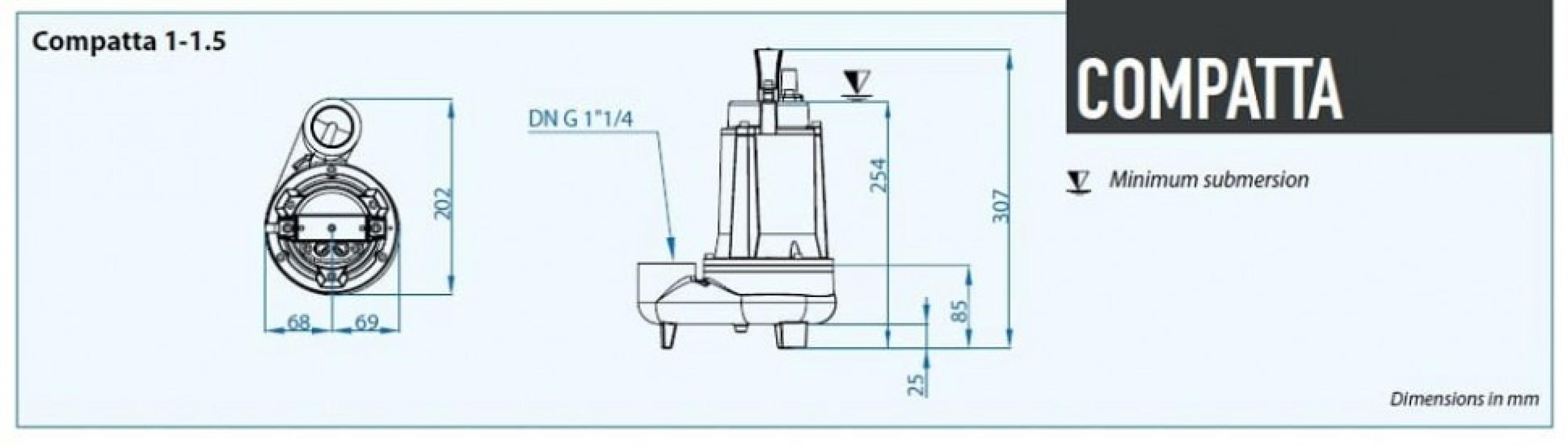 - 2 полюса 50 Гц Горизонтальный напорный патрубок (за исключением Compatta 1-1, 5 с вертикальным напорным патрубком)