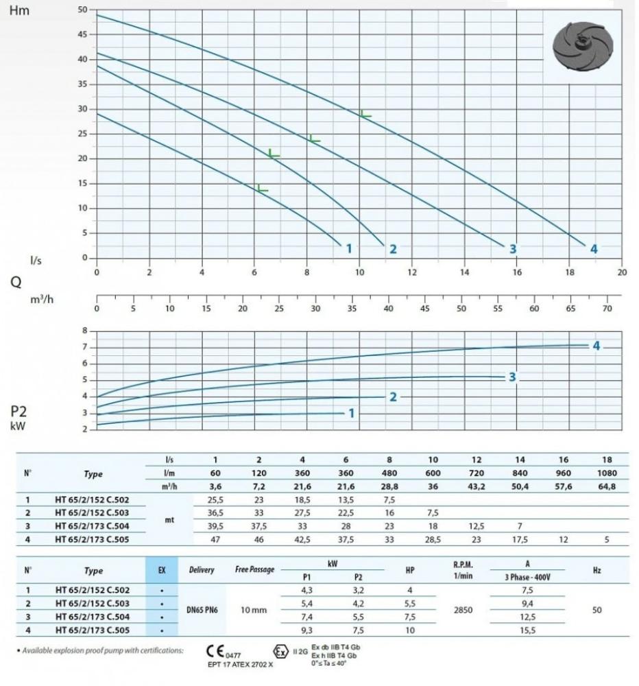 Характеристика: все основные компоненты изготовлены из чугуна GG25. Два отдельных торцевых уплотнения (сторона двигателя в масляной камере, сторона крыльчатки, что контактирует с жидкостью) и высококачественные детали обеспечивают безупречную работу и надежность изделия.