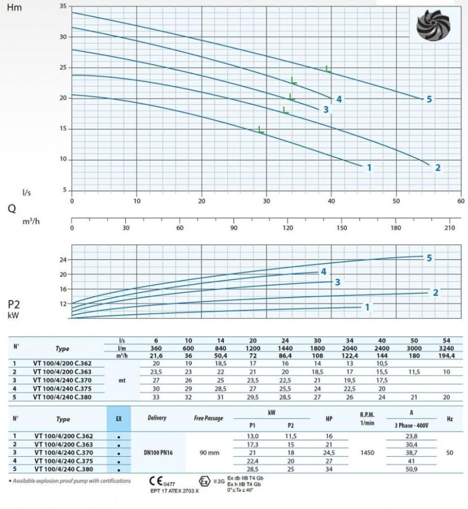 - 2 полюса 50 Гц Горизонтальный напорный патрубок