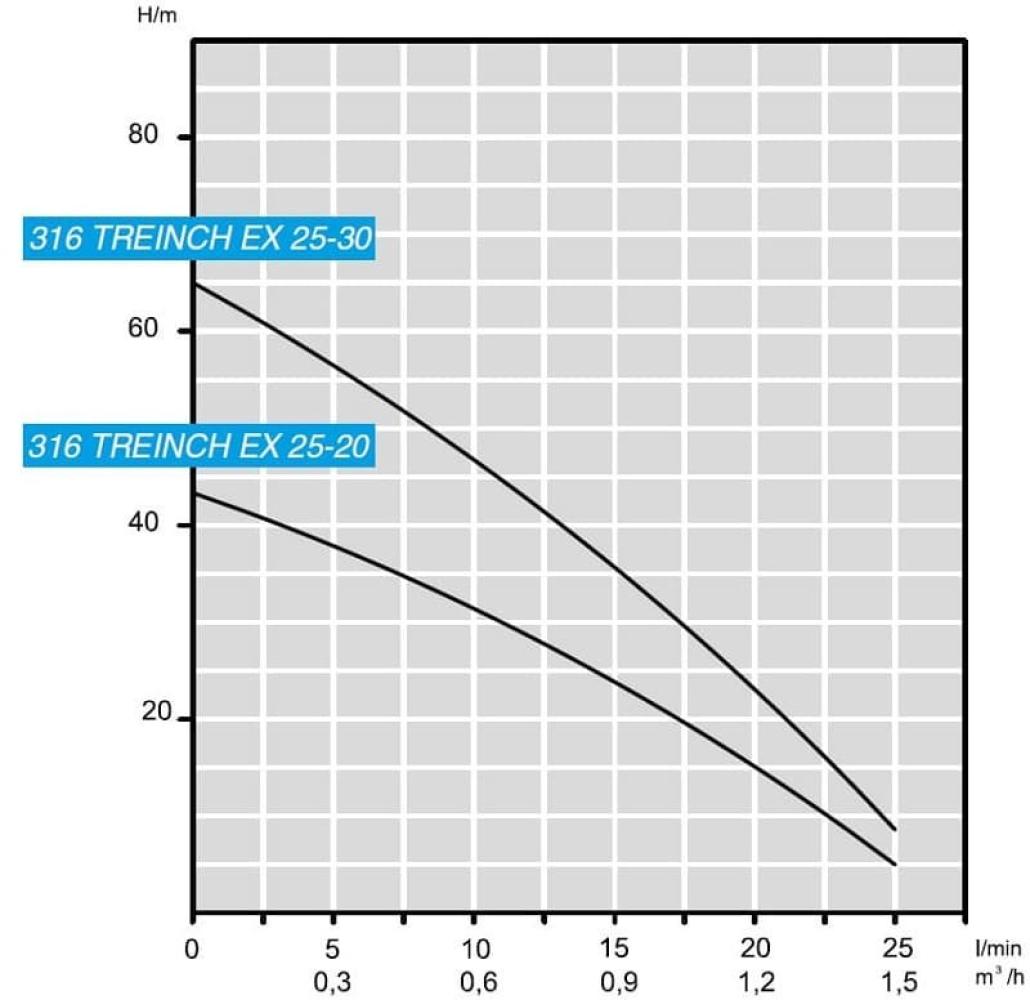 Двигатель: 2-полюсный асинхронный двигатель, 50 Гц, 2850 об/мин; изоляция класса F; защита IP68; рабочее напряжение: однофазное 220V, трехфазное 380V.