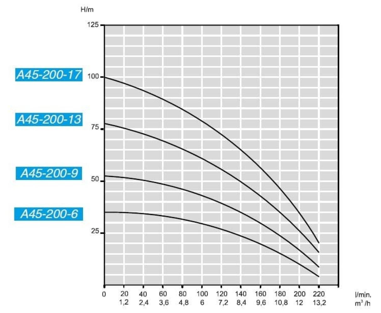 Двигатель: 2-полюсный асинхронный двигатель, 50 Гц, 2850 об/мин Изоляция класса F. Защита IP68. Рабочее напряжение: однофазное 220V, трехфазное 380V. Электродвигатель охлаждается нетоксичной, не загрязняющей окружающую среду жидкостью.