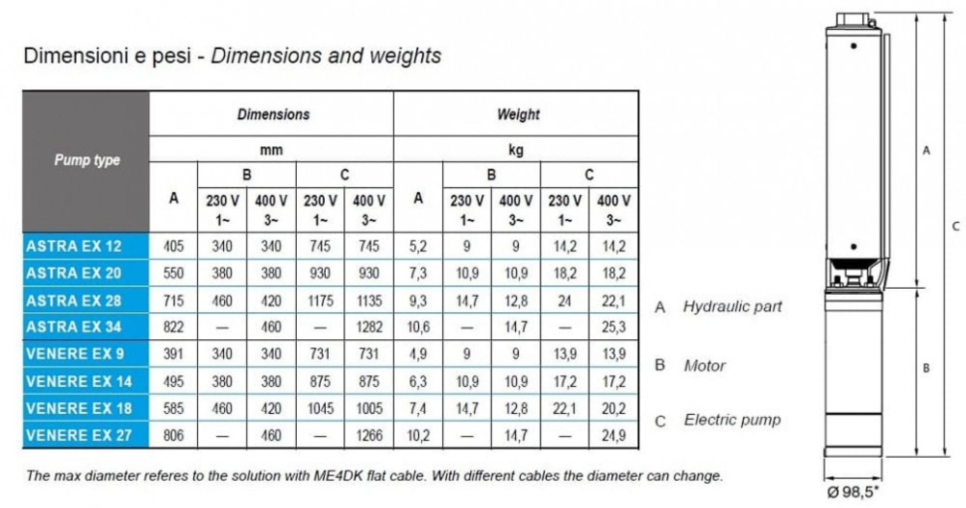Аксессуары: панель управления, искробезопасный модуль с цепью питания ATEX, регулятор уровня ATEX с электрическим кабелем длиной 5, 10 или 20 м, электронный датчик уровня ATEX (или ID ATEX), максимальный фильтр 142, Maxifilter 170, выпускается также с наклонной стойкой для наклонных скважин, электрический кабель для соединения соответствии выбранной версии и перекачиваемой жидкостью.