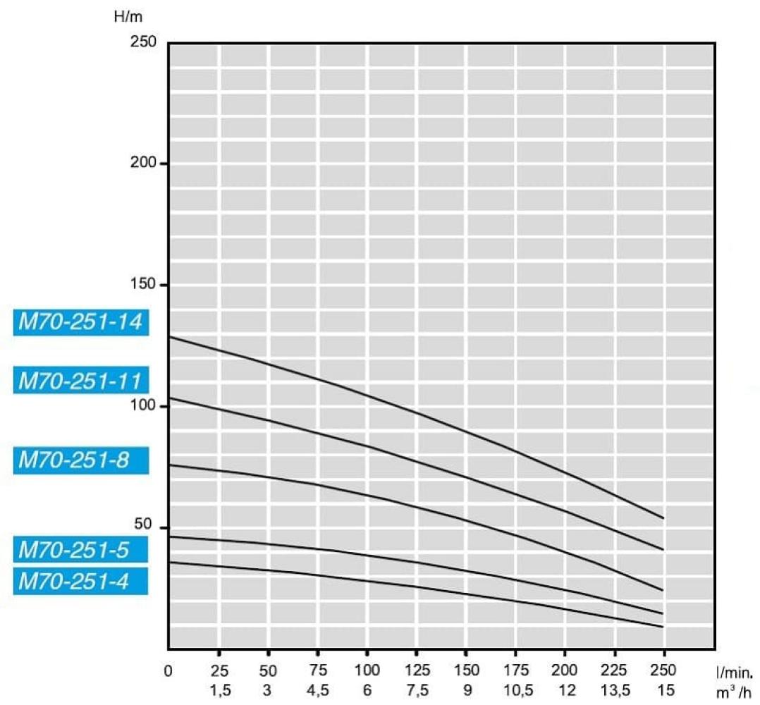 Особенности: Многоступенчастые моноблочные электрические насосы с гидравлической частью, расположенной под электрическим двигателем, охлаждаемым перекачиваемой жидкостью. Электрические насосы выпускаются с включенным электрическим кабелем длиной 5 м ID 4G1, 5. Внешний корпус насоса, корпус двигателя, вал, рабочие колеса и диффузоры из нержавеющей стали. Уплотнение из Витона. Резьбовое нагнетательное отверствие 1 " 1/2 от 1,5 кВт до 3 кВт. Фланцевый нагнетательный патрубок PN25 DN32 UNI 6083/67 мощностью от 4 до 5,5 кВт. Насосы оснащены фильтром, который не должен содержать отложений и не позволяет перекачивать жидкости с твердыми частицами размером больше 1 мм.