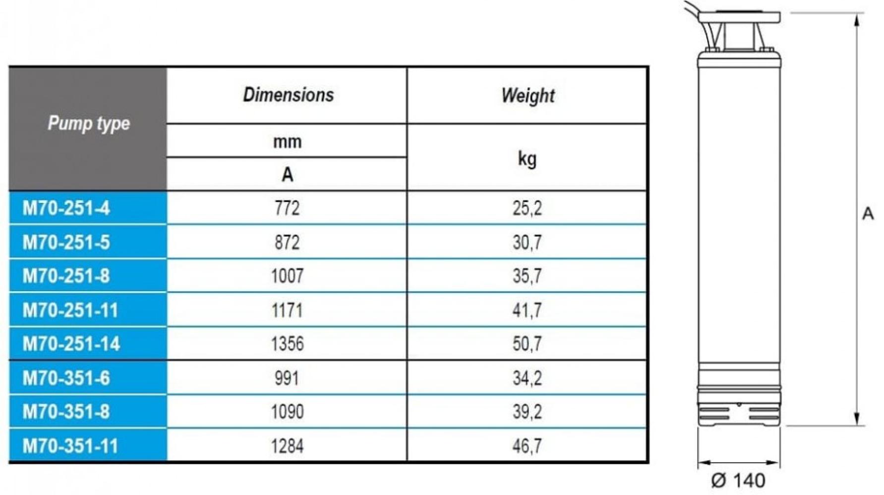 Двигатель: 2-полюсный асинхронный двигатель, 50 Гц, 2850 об/мин Изоляция класса F. Защита IP68. Рабочее напряжение: однофазное 220V, трехфазное 380V. Электродвигатель охлаждается нетоксичной, не загрязняющей окружающую среду жидкостью.